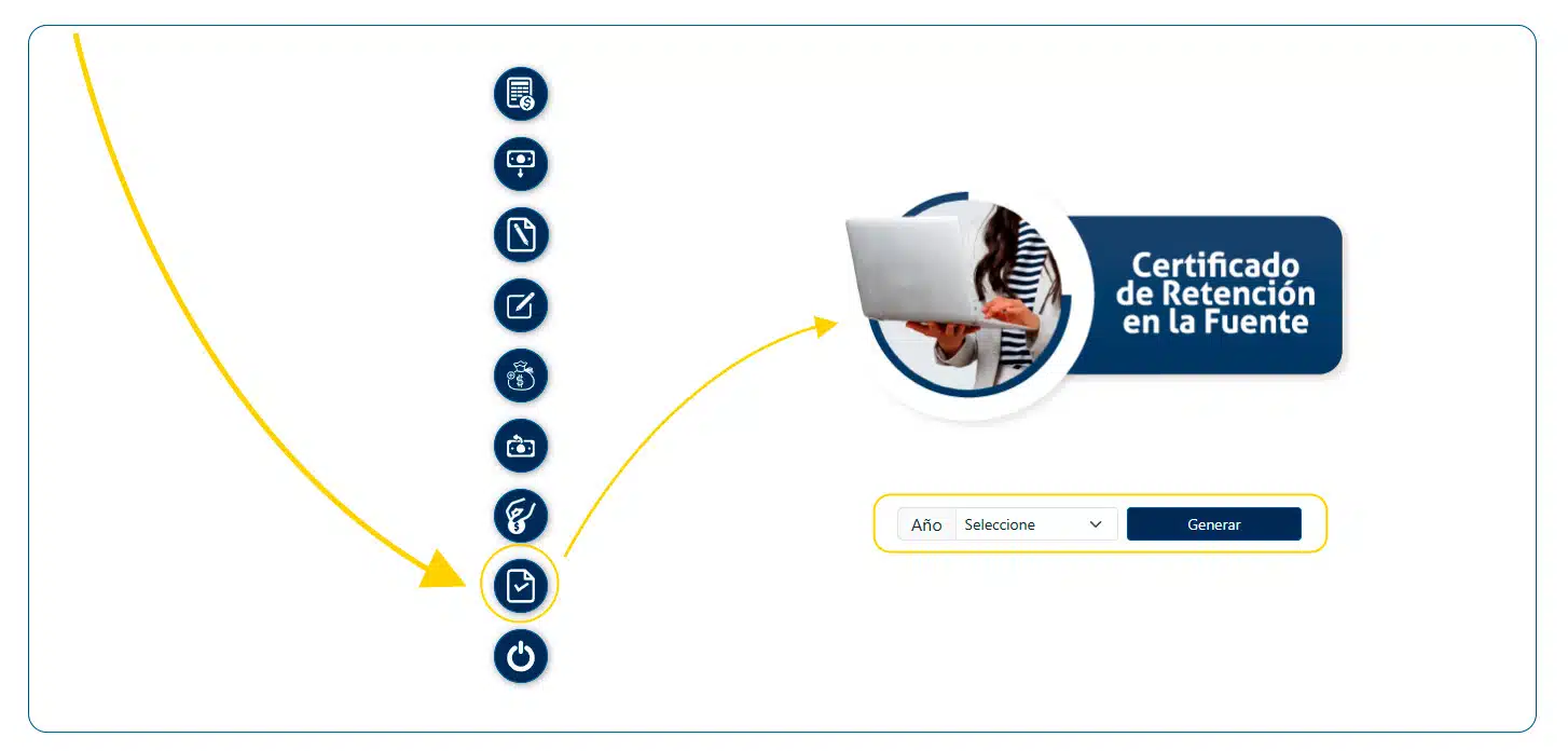 Genera el certificado de declaración de rentaEn el menú lateral izquierdo encontrarás el ícono “ Certificados ”. Presiona clic y te aparecerá: