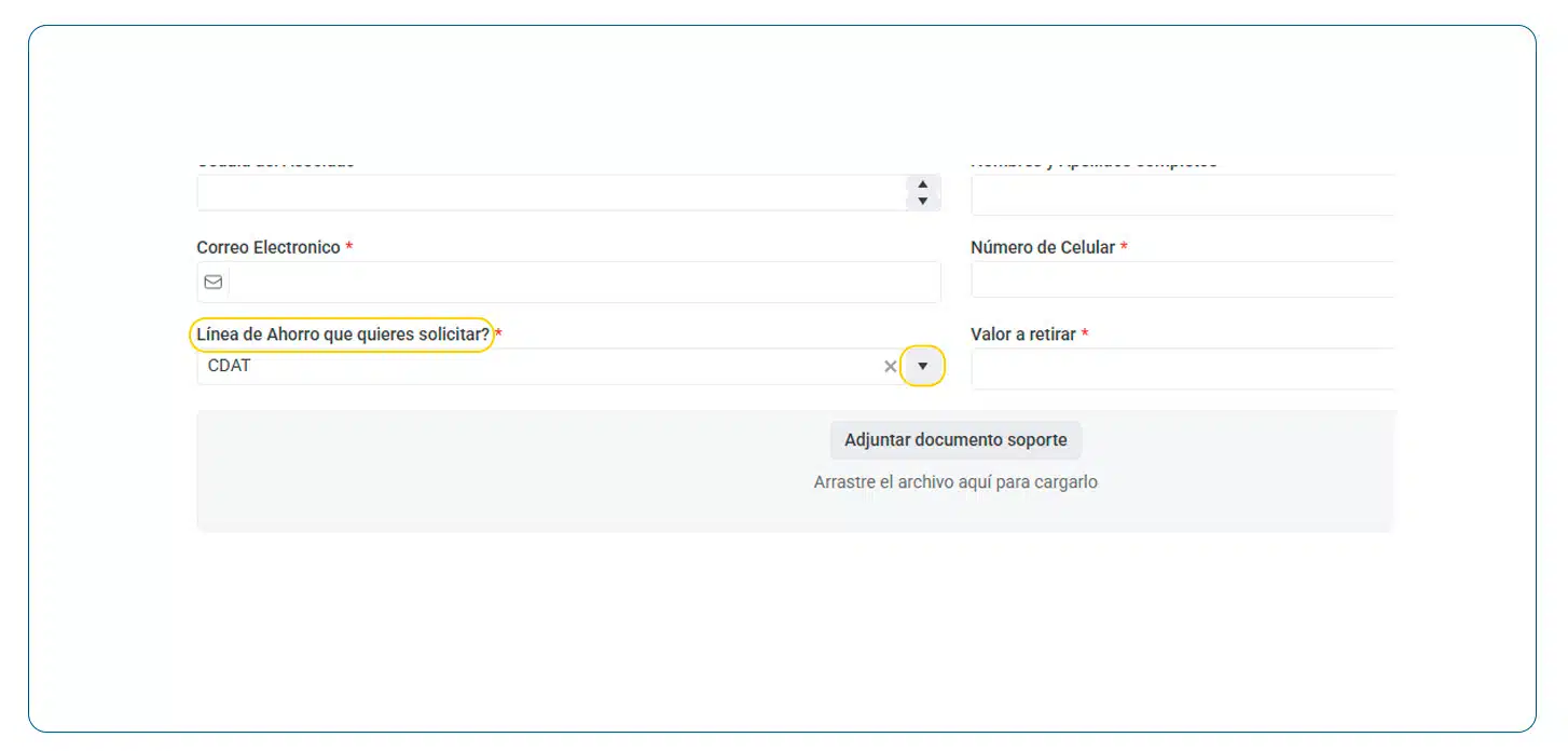 Hacia abajo. Selecciona la línea de ahorro con la que tienes vínculo.